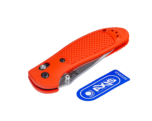Za bezpieczeństwo pracy odpowiada flagowy mechanizm Benchmade, dwustronna blokada Axis-lock, ceniona za ogromną wytrzymałość mechaniczną, odporność na zabrudzenie oraz wygodę obsługi dla prawo i leworęcznych użytkowników.