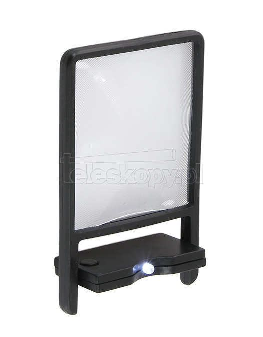 Bardzo cienka lupa w postaci ekranu powiększającego typu soczewki Fresnela oprawionego w ramkę z tworzywa. Lupę wyposażono w podświetlenie LED.