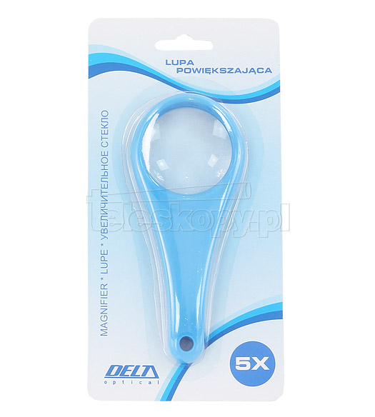 Lupa powiększająca z rączką, wykonana z tworzywa. Powiększenie około 5x, średnica soczewki 50 mm. Lekka i mała, jest idealna do czytania drobnego tekstu, dzięki dużemu powiększeniu. Sprawdzi się również w warsztacie, poza domem, na wycieczce na łąkę czy do lasu.