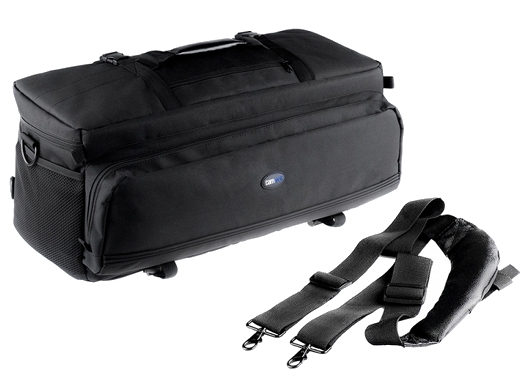 W komplecie znajduje się wygodny, regulowany pasek naramienny, z metalowymi klamrami, ułatwiającymi szybki montaż lub demontaż. Dla zapewnienia maksimum wygody torba została również wyposażona w uchwyt do noszenia pokryty specjalną warstwą materiału antypoślizgowego. Pod spodem torby znajdują się specjalne uchwyty umożliwiające podpięcie statywu przy pomocy dołączonych do zestawu pasków mocujących.