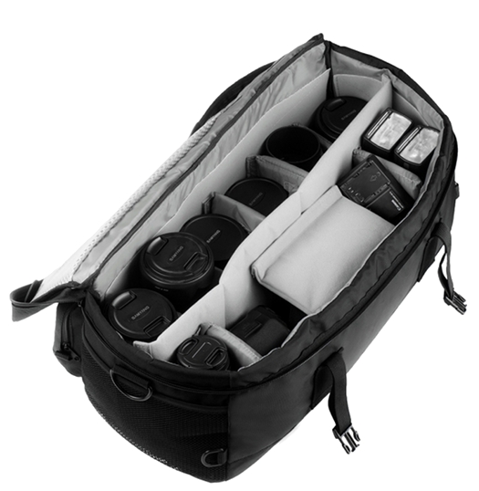 • pomieści 2-3 korpusy, nawet 12 obiektywów, kilka lamp błyskowych i szereg innych akcesoriów,