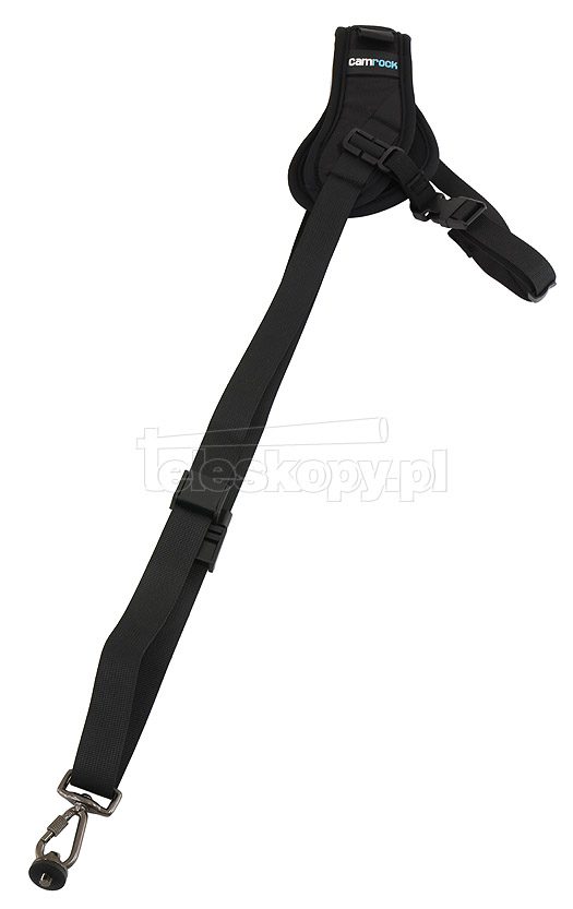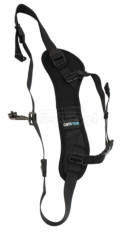 Ruch aparatu na pasku zablokować można w wybranej pozycji przy pomocy dwóch ograniczników. Camrock FastStrap umożliwia szybkie odpinanie i przypinanie aparatu do paska przy pomocy metalowego karabińczyka i śruby mocującej (wkręcanej w mocowanie statywowe aparatu).