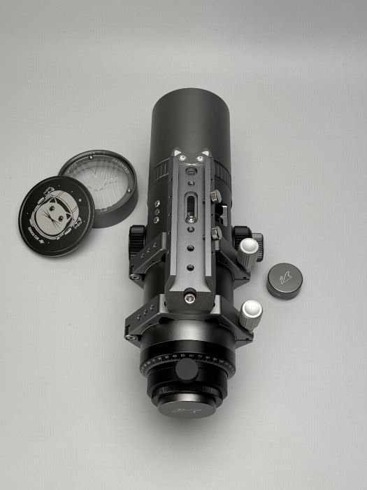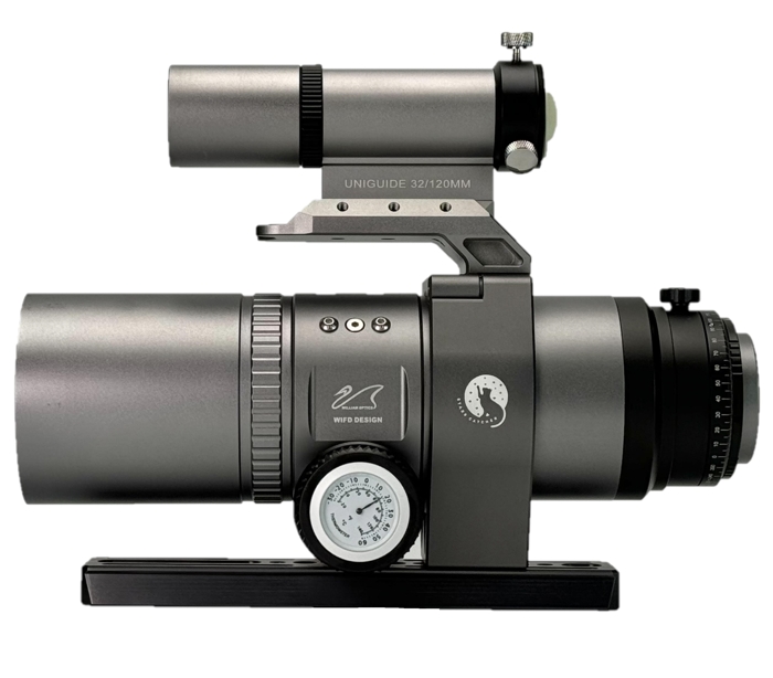 Tubus teleskopu osadzony jest na precyzyjnie wykonanych obejmach, wyposażonych w gniazdo Vixen do montażu szukacza lub guidera. W tej limitowanej edycji w skompletowaniu z teleskopem znajduje się William Optics UniGuide 32 mm Space-Grey (SKU: M-G32PB-TG)