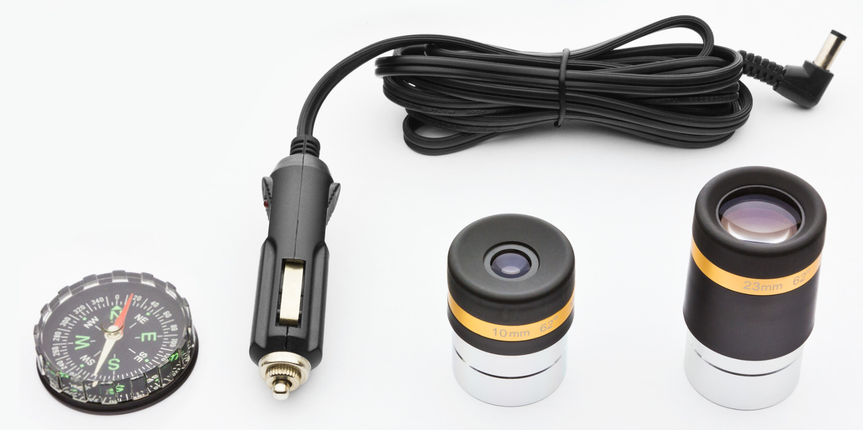 Teleskop wyposażony jest wyciąg okularowy, umożliwiający stosowanie okularów 1,25". Do zestawu dołączono dwa okulary asferyczne o polu widzenia 62°.