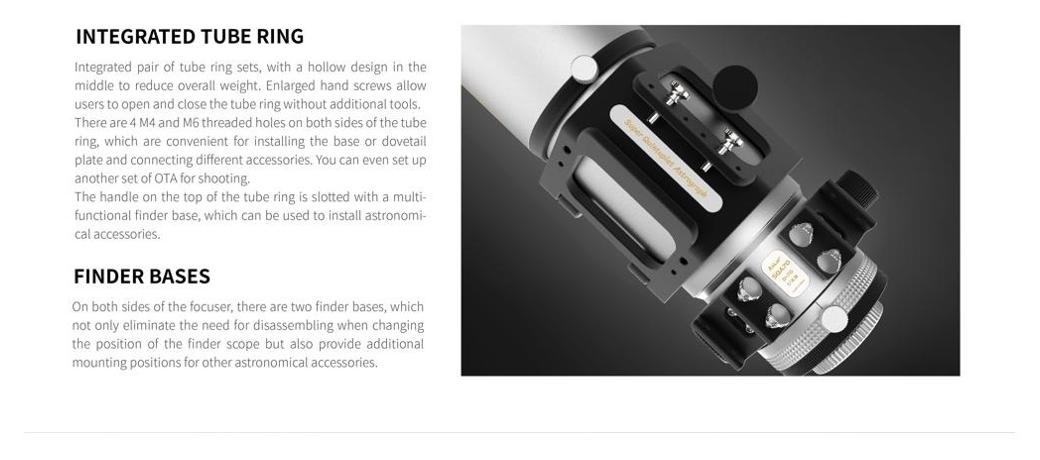 W parze z bardzo dobrymi własnościami optycznymi idzie jakość wykonania. Zarówno korpus, jak i osłona przeciwsłoneczna wykonane zostały z metalu. Dzięki temu konstrukcja tego teleskopu jest nie tylko solidna, ale pozwala także na pewne i stabilne zamocowanie go do statywu lub montażu za pomocą dołączonej stopki.