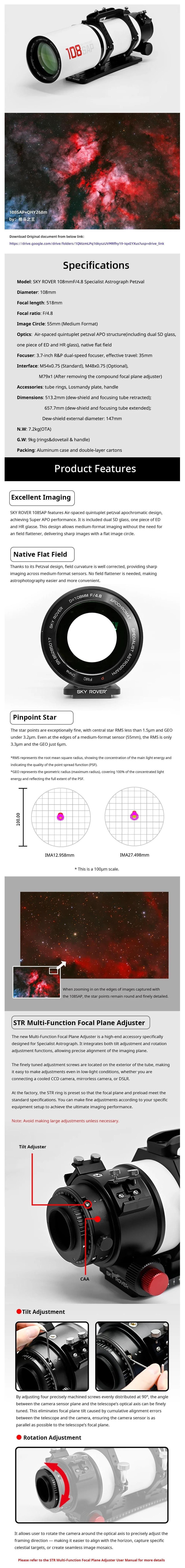 Astrograf Sky Rover Optics 108 mm SAP F/4.8 Medium Format Specialist Astrograph Petzval (SKU: 99718)