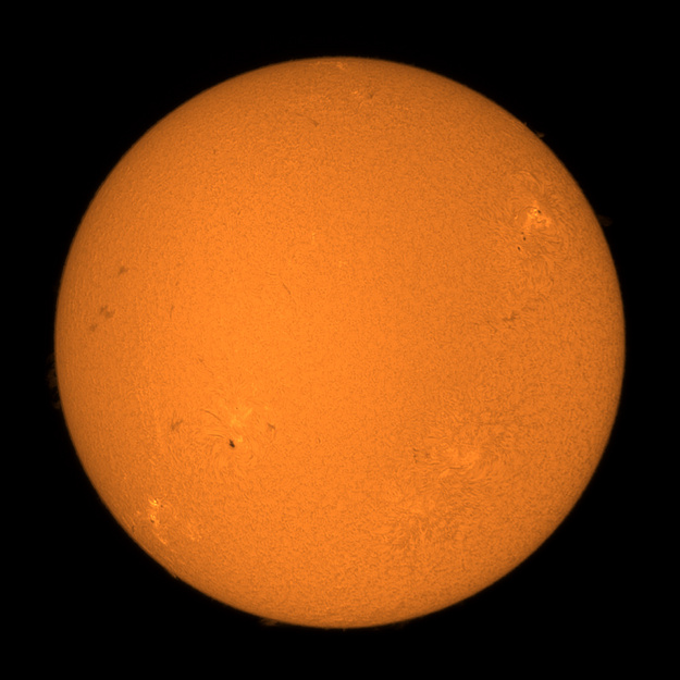Oglądanie naturalnego, pomarańczowo-czerwonego koloru pasma emisyjnego wodoru alfa to całkiem intymne przeżycie, bo jak wiadomo, każdy odbiera kolory na swój sposób (można też popatrzeć na białą ścianę przez fotograficzny filtr Ha, jeśli ktoś ma, ale Słońce fajniejsze...)