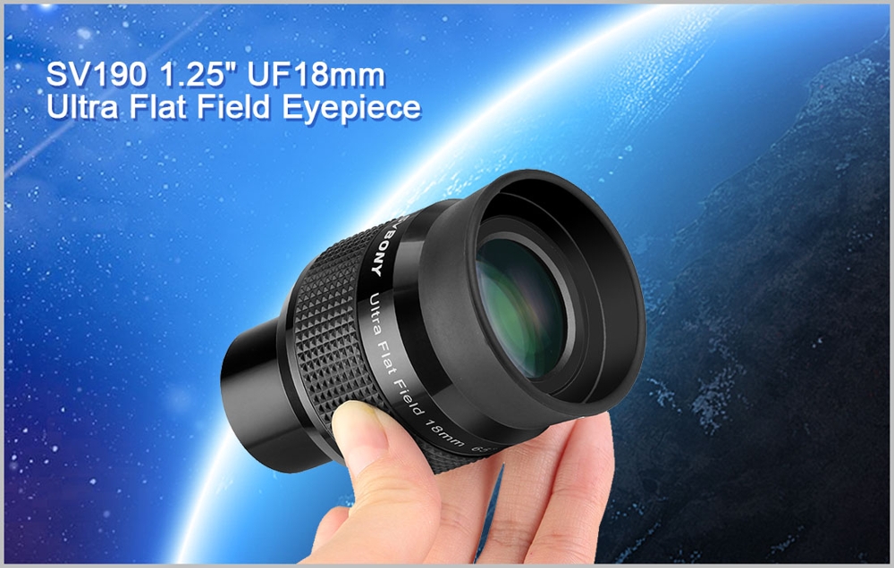 Svbony 18 mm SV190 1,25" Ultra Flat FMC to profesjonalny okular astronomiczny charakteryzujący się doskonałą korekcją krzywizny pola.
