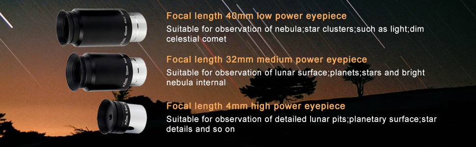 • trzy okulary Plössl: 6,3 mm, 32 mm i 40 mm
