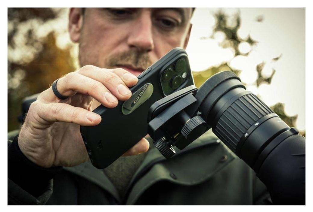 Kite Smartphone Adapter (Kite, SKU: K284305 / 130230) to lekki i regulowany adapter umożliwiający wykonywanie zdjęć oraz nagrań wideo smartfonem przez lornetkę, monokular lub lunetę. Zaprojektowany z myślą o precyzyjnym dopasowaniu i łatwości użytkowania, zapewnia stabilne oraz bezpieczne połączenie urządzenia mobilnego z optyką obserwacyjną.