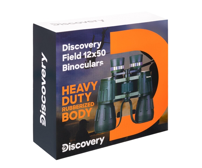 Discovery Field 12x50 to lornetka o dwunastokrotnym powiększeniu optycznym wyposażona w obiektywy o średnicy 50 mm. Instrument ten wykorzystuje pryzmaty typu Porro wykonane ze szkła BK-7, które dzięki wysokiej wartości liczby Abbego zapewnia utrzymanie aberracji chromatycznych na minimalnym poziomie, a co za tym idzie wierne odwzorowanie kolorów w polu widzenia. Soczewki tej lornetki zostały dodatkowo pokryte wielowarstwową powłoką antyrefleksyjną, co znacznie poprawia kontrast obrazu.