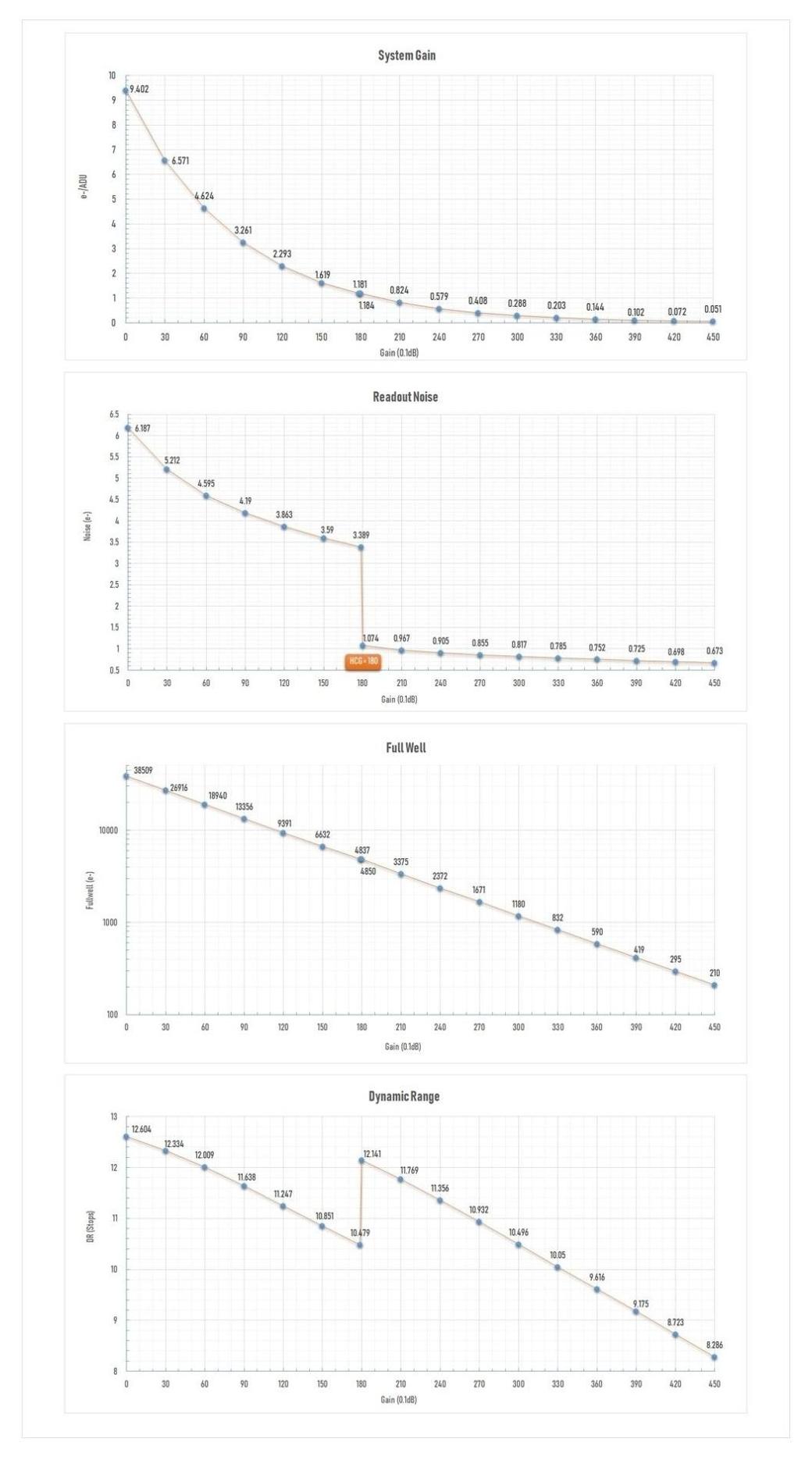 • szum odczytu: 6,1 e- (gn 0) → 0,67 e- (HCG ≥ 180)