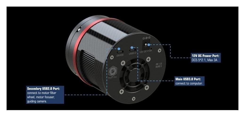 • złącze USB-C 3.2 Gen 1 (400 MiB/s) + port autoguider ST-4 (RJ-12)