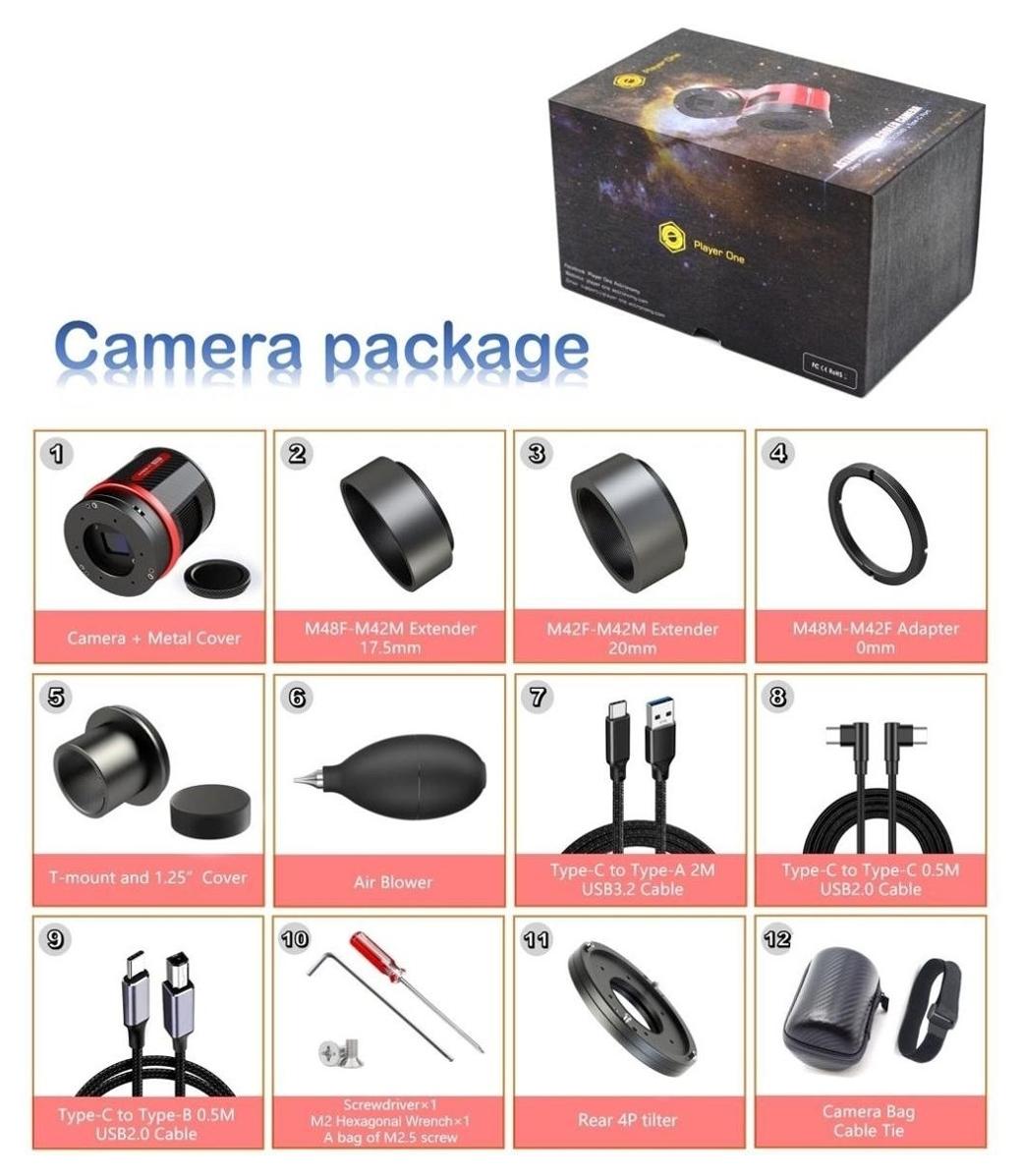 Ares-M PRO łączy wysoką czułość w całym zakresie widzialnym, głębokie chłodzenie i kompaktową obudowę z włókna węglowego. Doskonale sprawdzi się w fotografii mgławic, galaktyk i gromad kulistych przy długich ekspozycjach, a dzięki krótkim czasom odczytu i buforowi DDR-III nadaje się również do dynamicznych sesji Księżyca czy Słońca z ROI. Kamera stanowi szczytowe osiągnięcie linii chłodzonych urządzeń Player One i jest gotowa do współpracy ze wszystkimi akcesoriami ekosystemu (koła filtrowe Phoenix, szuflady FD MAX, OAG MAX, tilter).