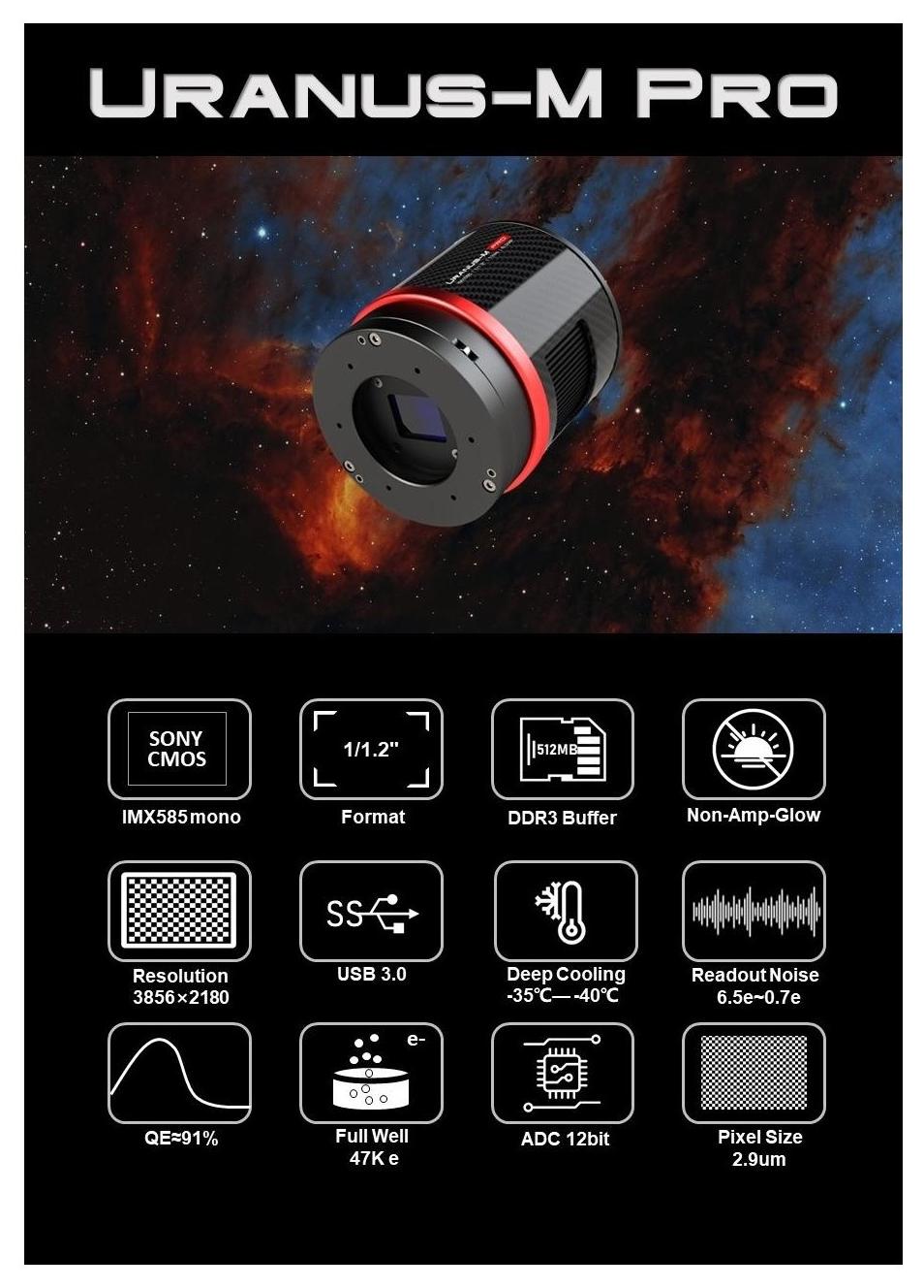 • kmonochromatyczna kamera o znikomym szumie odczytu przeznaczona do astrofotografii planetarnej i mgławicowej
