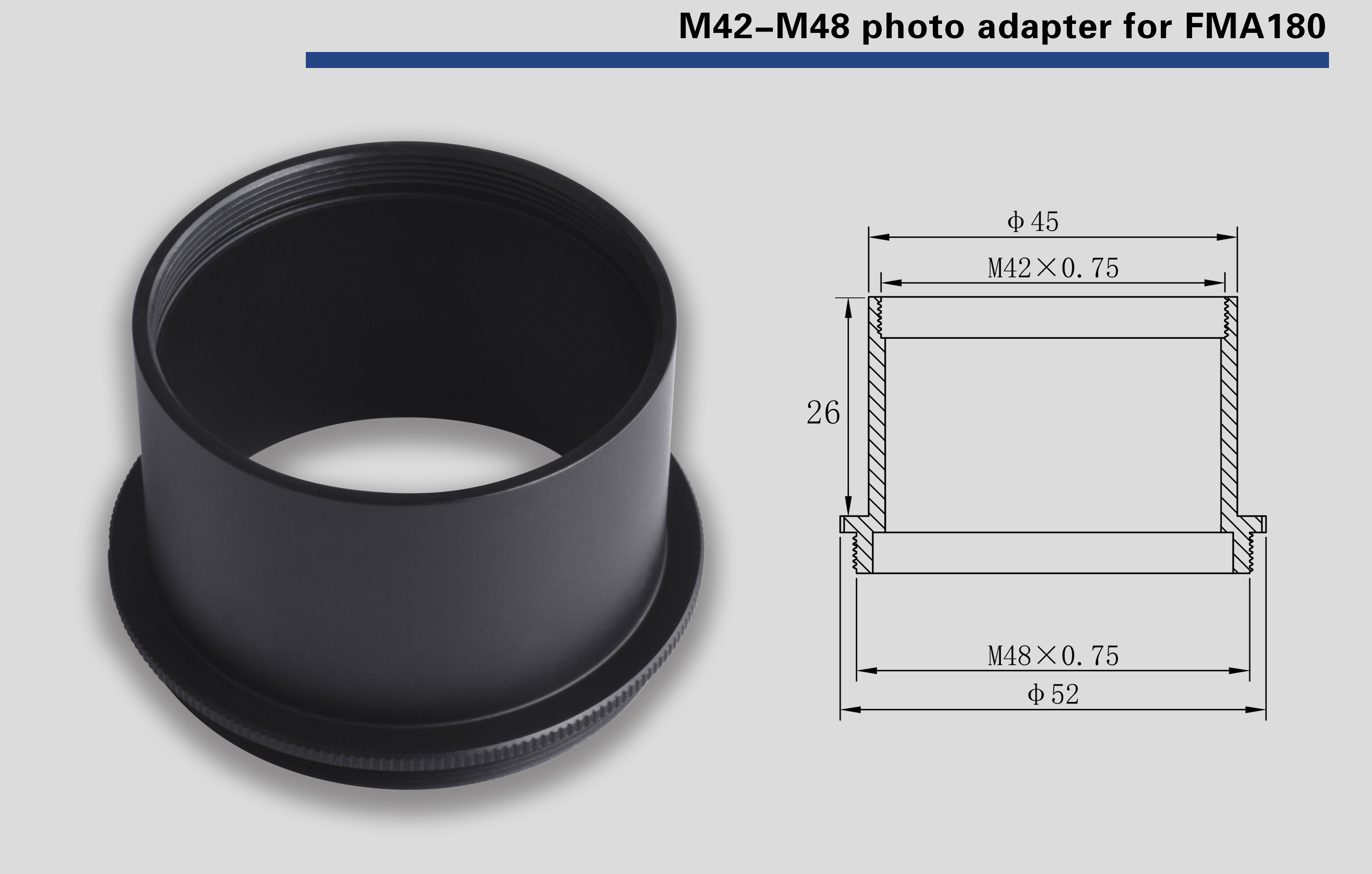 Adapter pozwalający na podłączenie kamery / aparatu przez gwint M48, przeznaczony do Askar FMA180 40/180 mm f/4,5