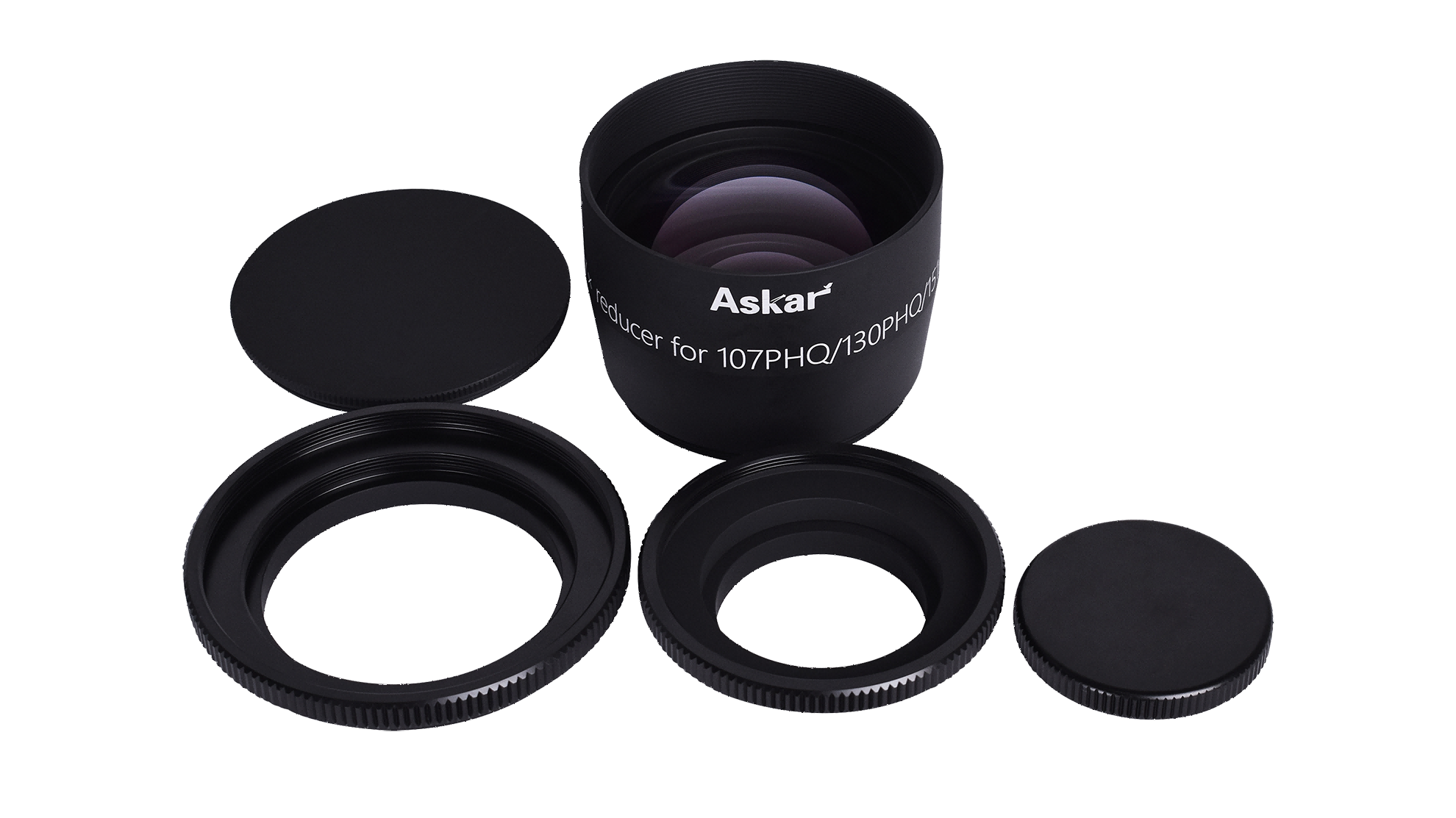 Askar 107PHQ/130PHQ/151PHQ Universal Reducer został opracowany jako dedykowane akcesorium do astrografów Askar 107PHQ, 130PHQ oraz 151PHQ. Gwarantuje on znakomitą korekcję pola, dzięki czemu idealnie współpracuje on z profesjonalnymi aparatami i kamerami wyposażonymi w matrycę pełnoklatkową.