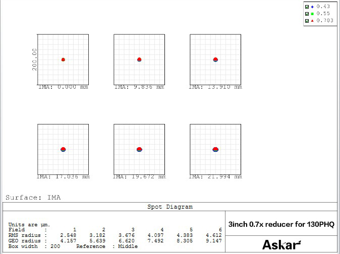 Reduktor ten zmniejsza ogniskową o czynnik 0,7x, co w przypadku astrografu Askar 107PHQ daje wartość 524 mm przy f/4,9 a dla modelu 130PHQ 700 mm przy f/5,4, zaś dla 151PHQ 740 mm przy f/4,9. Takie parametry pozwalają nie tylko wykonywać zapierające dech w piersiach fotografie w szerokim polu widzenia, ale przede wszystkim wyraźnie skrócić czas ekspozycji.