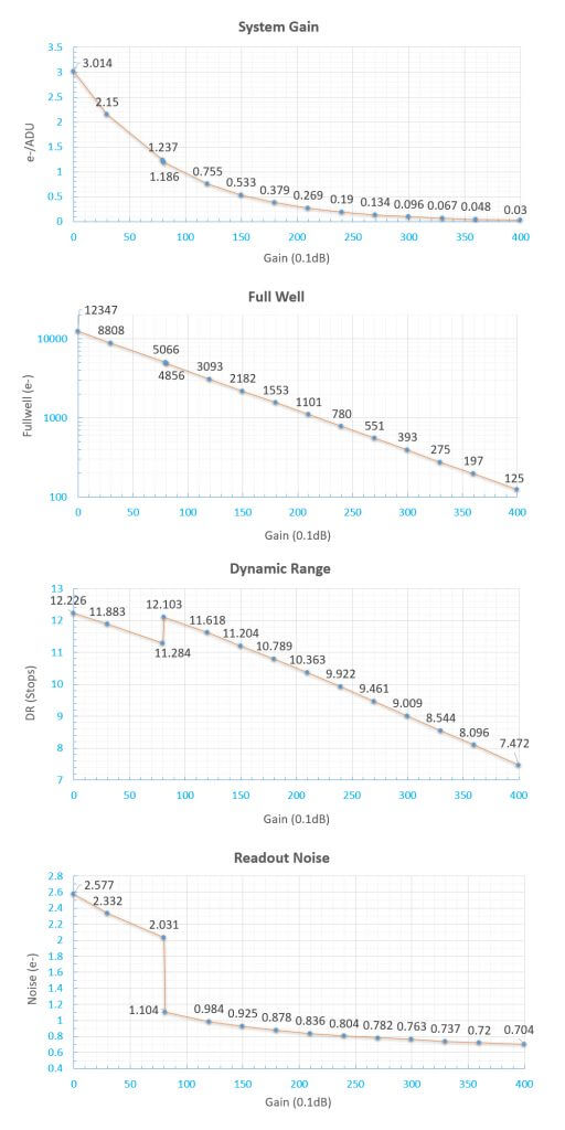 • szum odczytu: 0,7 e- (HCG) – 3,0 e- (gain 0)
