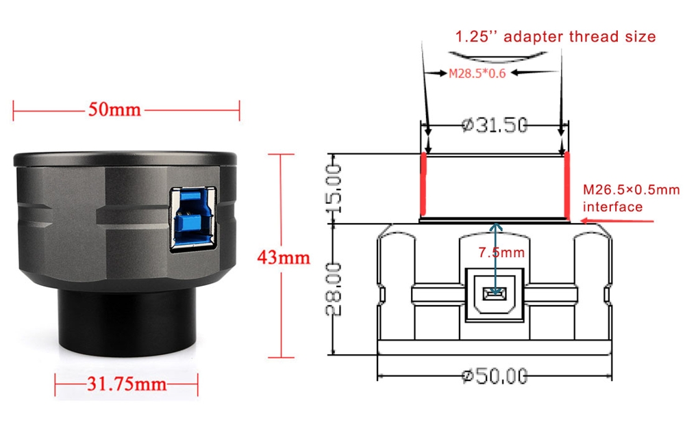 Kamera wyposażona została w matrycę CMOS Sony IMX415 formatu 1/2,8" o rozdzielczości 3264 x 2160 px. Sensor ten charakteryzuje się wysoką czułością przy jednoczesnym zachowaniu niskiego poziomu szumu odczytowego pomimo braku aktywnego chłodzenia. Zastosowany w kamerze 10-bitowy przetwornik analogowo-cyfrowy oraz interfejs przesyłu danych USB 3.0 pozwala na zapis zdjęć i filmów z maksymalną szybkością 15 klatek na sekundę przy pełnej rozdzielczości matrycy.