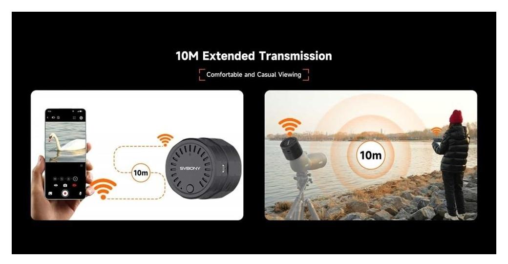 Elektroniczny okular Wi-Fi SVBONY SC002 (SVBONY, SKU: F9396A) to kompaktowa kamera cyfrowa zaprojektowana z myślą o zastosowaniach przyrodniczych i myśliwskich, takich jak digiscoping i obserwacja ptaków. Dzięki szerokiej kompatybilności z lunetami obserwacyjnymi o średnicy okularu od 37 mm do 56 mm, stanowi wygodną alternatywę dla fotografii smartfonowej. Wbudowana karta pamięci, łączność Wi-Fi oraz aplikacja SVBONY Cam umożliwiają natychmiastowe podglądanie i zapisywanie zdjęć oraz filmów bez zajmowania pamięci telefonu.