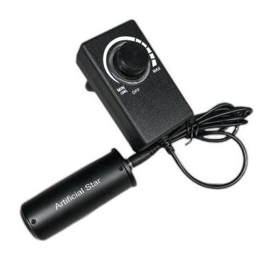 Ta sztuczna gwiazda pozwala przetestować teleskop i idealnie go wyregulować. Wykorzystaj cenne, bezchmurne noce do pracy z teleskopem. Tutaj regulacja teleskopu jest znacznie dokładniejsza niż w nocy, ponieważ pracujesz w pomieszczeniu i nie masz problemów z turbulencjami powietrza, a także zawsze jest problem z użyciem narzędzi przed teleskopem. optyki, gdy jest ciemno Do kolimacji teleskopu lub do wykrycia aberracji optycznych, takich jak astygmatyzm lub koma, potrzebna jest jedynie niewielka odległość między teleskopem a sztuczną gwiazdą. W takich przypadkach, ze względu na rozszerzoną płaszczyznę ogniskową, do uzyskania ostrości mogą być potrzebne tubusy przedłużające. Aberrację sferyczną bardzo trudno jest wykryć przy użyciu sztucznej gwiazdy. Gwiazdę należy umieścić w znacznie większej odległości od teleskopu. Zalecamy odległość w metrach równą jednej trzeciej apertury w milimetrach, np. w przypadku teleskopu z aperturą 200 mm sztuczną gwiazdę należy umieścić w odległości co najmniej 66 m od teleskopu. Rozmiar cylindra: 1,25 cala (31,8 mm, pasuje do każdego uchwytu na słuchawkę) Regulacja: zmienna od 3,5 V do 12 V Rozmiar sztucznej gwiazdy: 30μm - 0,03mm Regulator napięcia: w zestawie Gwint 1/4" na spodzie umożliwia łatwe podłączenie do stojaka itp.
