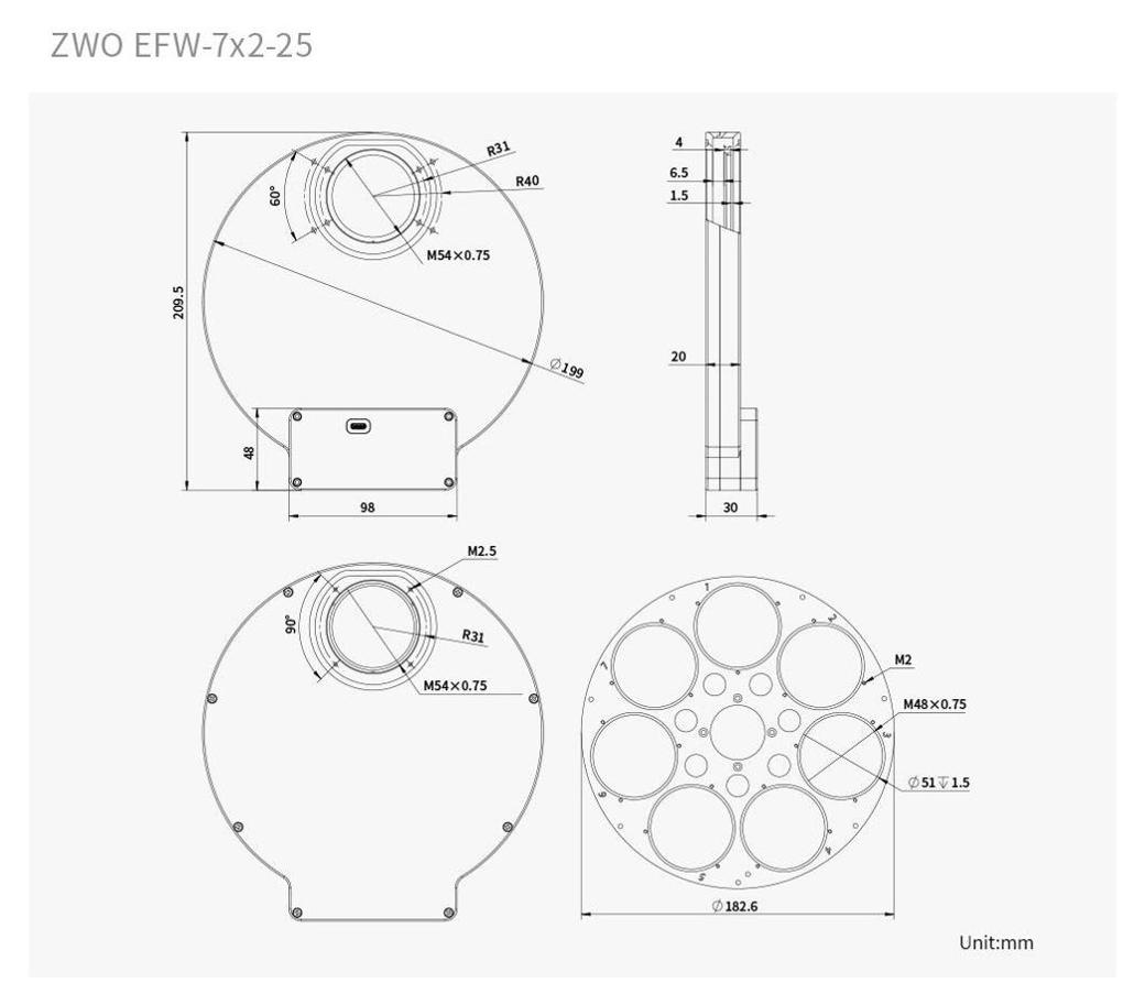 • koło filtrowe ZWO EFW 7 × 2" (wersja 2025)