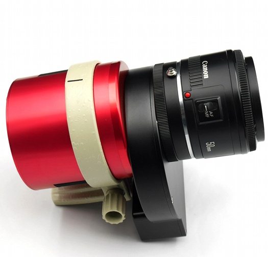 Adapter that allows the use of Canon EOS lenses with ZWO ASI1600 cameras and the EFW filter wheel.