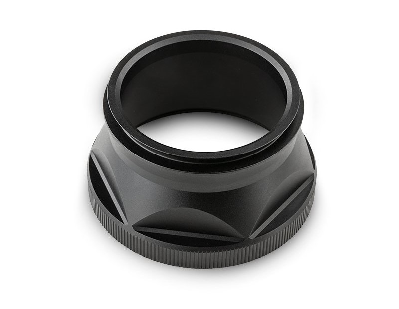 Adapter jest wykonany z aluminium anodowanego na czarno w technologii CNC. Wnętrze jest piaskowane, aby zapobiec odblaskom i zapewnić najwyższy kontrast. Adapter ma wygodną radełkowaną powierzchnię.