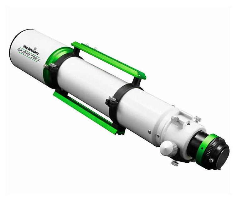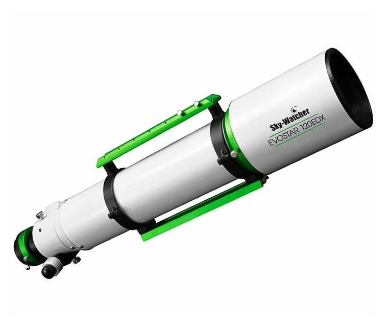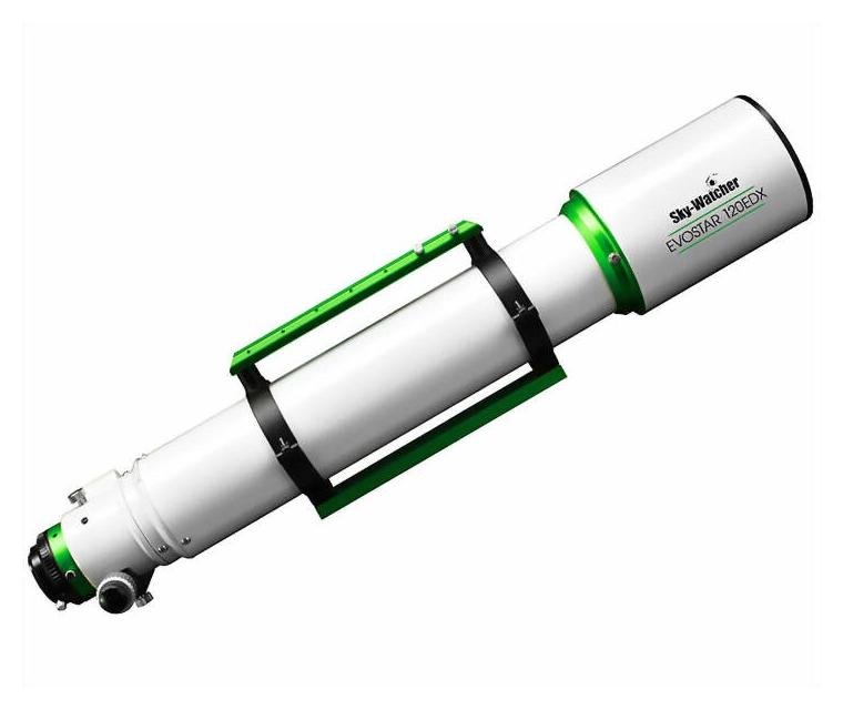 The Sky-Watcher Evostar 120EDX apochromatic telescope is a new version of the popular ED 120/900mm refractor, featuring modernized mechanics and an improved focuser. The ED doublet, based on FPL53 glass and Schott lace glass, delivers high image quality with minimal chromatic aberration. Thanks to the large Crayford focuser with 360° rotation and a retractable dew shield, the telescope is excellent for both astrophotography and visual observations. • ED doublet system with FPL53 element and Schott glass • f/7.5 aperture – universal for photos and observations • MHTC coatings on all air-to-glass surfaces • 2.8" Crayford focuser with 1:11 microfocus • 360° rotation and focusing scale • M56 × 1 external thread for image correctors • retractable anti-condensation cover • transport handle integrated with clamps • lightweight design and easy operation thanks to doublet optics • optional field reducer/flatter 0.85× (SKFlat120) • Evostar 120EDX optical tube • tube clamps with handle • Vixen mounting rail • aluminum transport case • lens diameter: 120 mm • focal length: 900 mm • aperture: f/7.5 • lens type: ED doublet (FPL53 + Schott lace glass) • coatings: MHTC on all air-to-glass surfaces • focuser: Crayford 2.8" with 1:11 microfocus • rotation: 360° • focusing scale: yes • thread for correctors: M56 × 1 external • finder socket: Vixen standard • tube length: 774 mm (folded), 848 mm (with extended cover) • tube weight: 6.74 kg