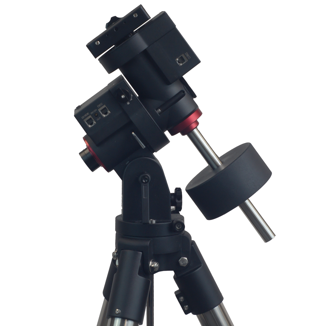 Metalowa głowica montażu skrywa w sobie precyzyjny system napędowy złożony z silników krokowych o wysokiej rozdzielczości, z których moment obrotowy przenoszony jest na osie deklinacji i rektascensji za pomocą przekładni pasowej. Najwyższą precyzję prowadzenia zestawu zapewnia zaawansowany system permanentnej korekty błędu okresowego, dzięki któremu jego wartość jest mniejsza niż dziesięć sekund łuku.