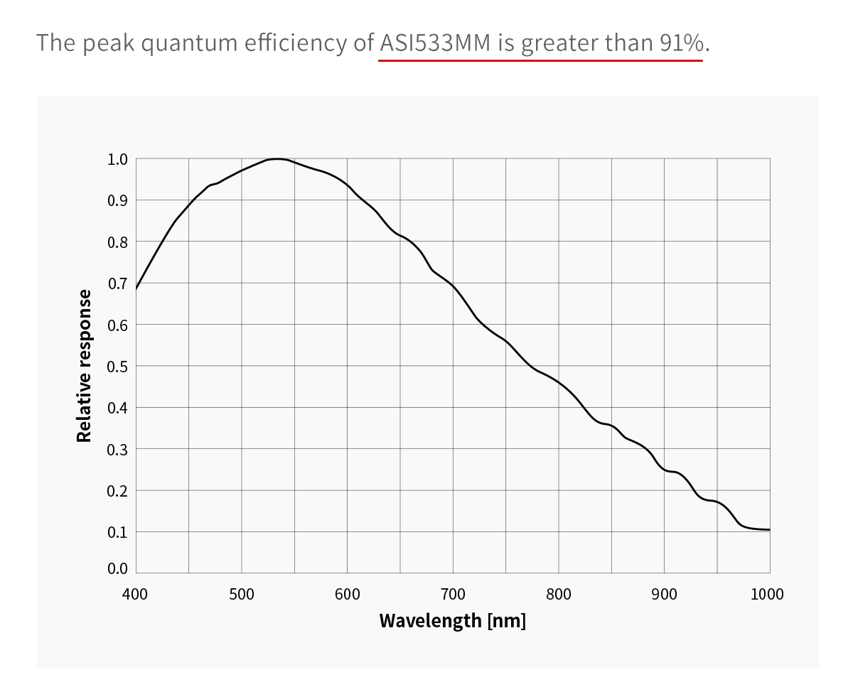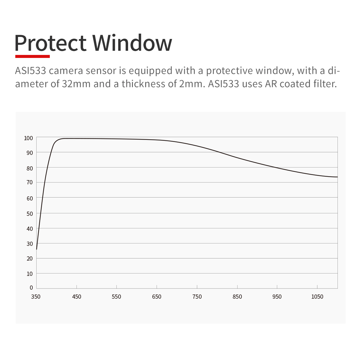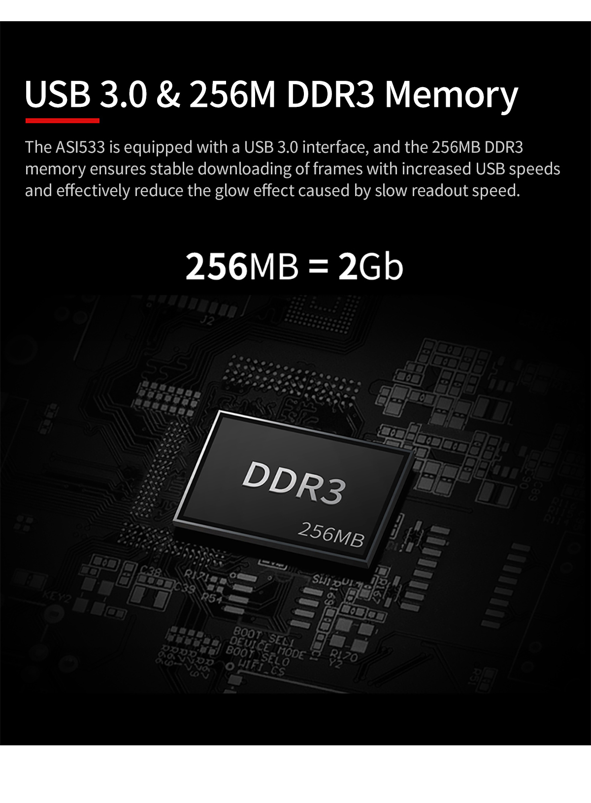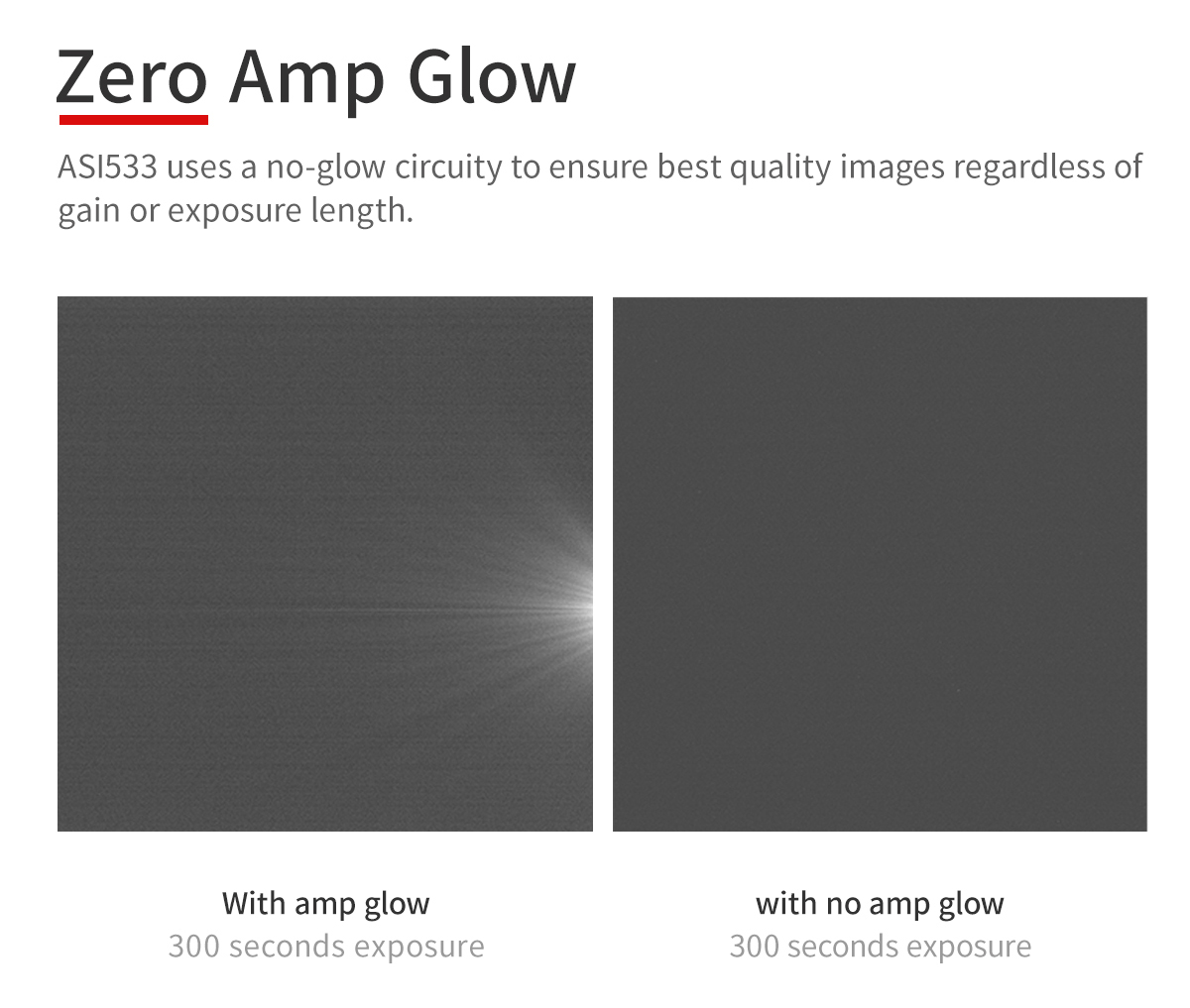 Wykorzystanie sensora Sony IMX533 zbudowanego w technologii Sony Starvis™ uzyskano niespotykaną do tej pory czułość, która pozwoli rejestrować słaby sygnał pochodzący nawet od najdalszych obiektów dalekiego kosmosu. Produkt ten wolny jest także od efektu Amp Glow charakterystycznego dla wielu matryc CMOS, objawiającego się rozjaśnieniem pewnych części obrazu podczas długich ekspozycji. Pomimo braku aktywnego chłodzenia, kamera charakteryzuje się niezwykle niskim poziomem szumu odczytowego, mieszczącym się w zakresie 1 do 3,8 e.