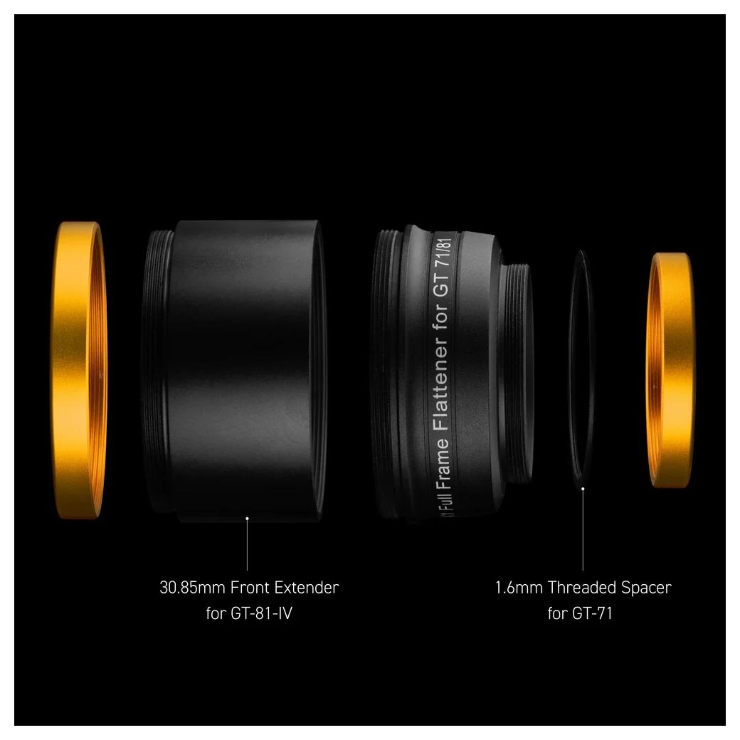 FLAT GT 1.0x to precyzyjny korektor pola przeznaczony do astrofotografii, umożliwiający uzyskanie ostrego obrazu na całej powierzchni matrycy bez zmiany ogniskowej teleskopu.