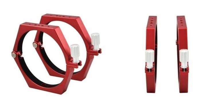 155 mm PLUS support rings (PrimaLuceLab, SKU: PLLANSU155P) to para aluminiowych obejm przeznaczonych do tubusów o średnicy około 155 mm – np. refraktorów 6″ f/6 lub kompaktowych katadioptryków 6″. Dzięki pełnej zgodności z systemem mechaniki PLUS pierścienie pozwalają mocować szyny Vixen lub Losmandy pod teleskopem oraz prowadnice guidera czy uchwyty nad tubusem z zachowaniem idealnej osiowości.