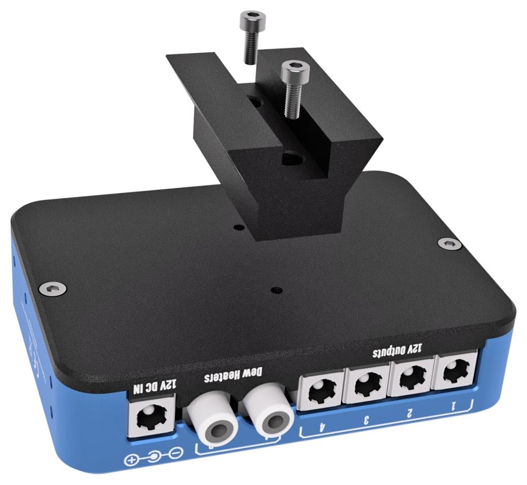 Płoza montażowa kompatybilna z PPBmicro, PPBadvance (niebieska/czarna obudowa) oraz DewMaster2 (PegasusAstro, SKU: PEG-SHOE) umożliwia szybki i stabilny montaż urządzeń z serii Pocket Powerbox oraz DewMaster2 na teleskopie.