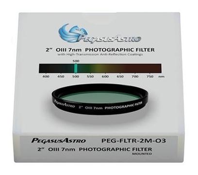 Filtr fotograficzny O3 7 nm w oprawie 2" (PegasusAstro, SKU: PEG-FLTR-2M-O3) to wąskopasmowy filtr przeznaczony do obserwacji i astrofotografii mgławic w liniach emisyjnych tlenu OIII. Przepuszcza pasmo o szerokości 7 nm centrowane na długości fali 500 nm, odpowiadającej liniom emisji OIII, jednocześnie skutecznie tłumiąc niepożądane tło.