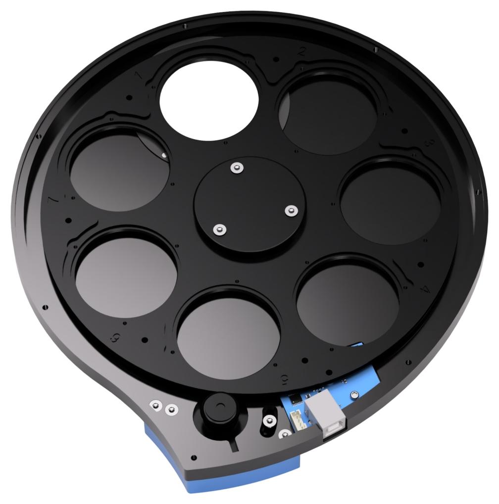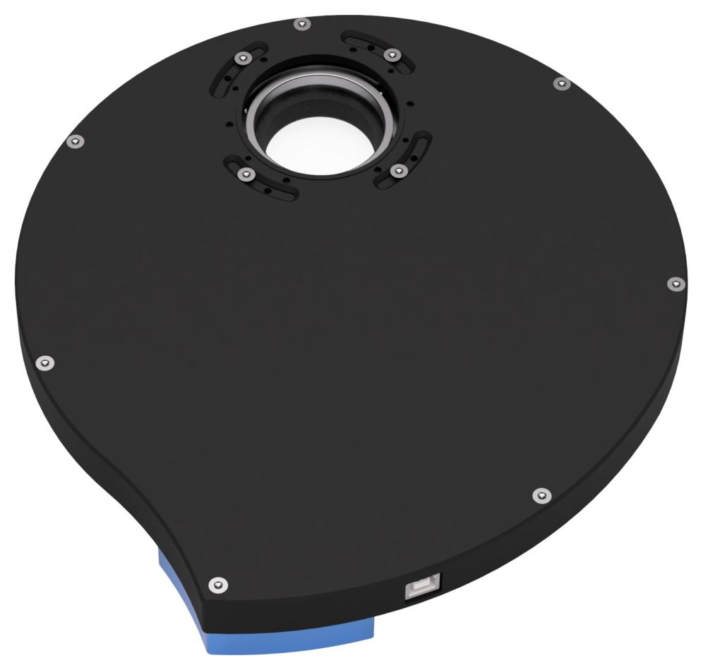 Korpus koła wykonano z frezowanego CNC aluminium wysokiej jakości, co pozwoliło uzyskać bardzo smukłą konstrukcję – zaledwie 19,0 mm grubości (19,6 mm z adapterami po obu stronach). Tak niewielki backfocus ułatwia integrację z kamerami CMOS/CCD oraz innymi akcesoriami, szczególnie w wymagających konfiguracjach astrofotograficznych.