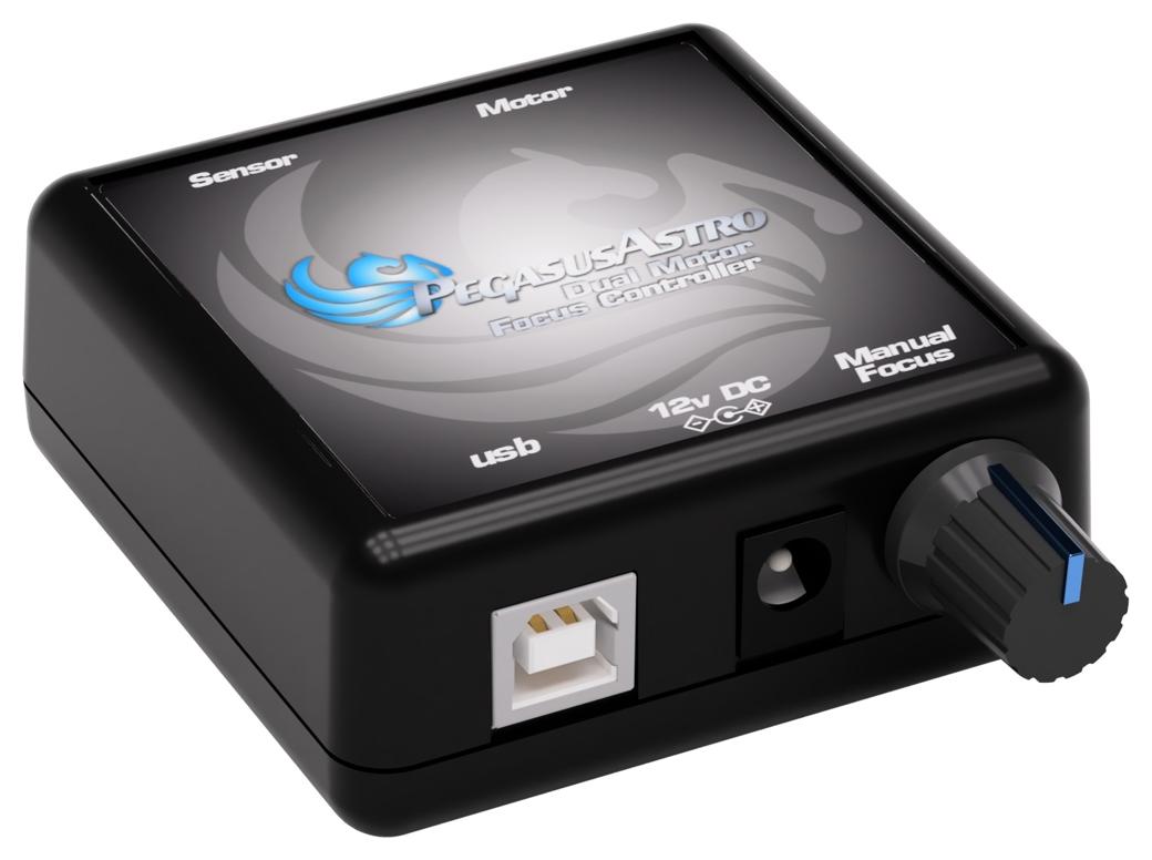 Dual Motor Focus Controller (PegasusAstro, SKU: PEG-DMFC) to uniwersalny kontroler silników do precyzyjnego, szybkiego i powtarzalnego ustawiania ostrości w teleskopach astronomicznych. Urządzenie obsługuje zarówno silniki krokowe (unipolarne i bipolarne), jak i silniki prądu stałego (DC), umożliwiając dopasowanie do szerokiej gamy focuserów i istniejących zestawów.