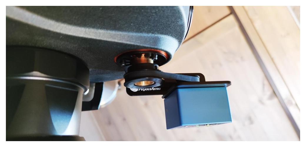 Zestaw FocusCube Zero dla Celestron SCT C11", EdgeHD, RASA 11 (v2) (PegasusAstro, SKU: PEG-MFKZERO-SCT11) to zintegrowany, bezluzowy napęd ostrości przeznaczony do teleskopów SCT. Urządzenie łączy silnik krokowy i kontroler w jednej obudowie, zapewniając precyzyjne, cyfrowe sterowanie ostrością z poziomu komputera.