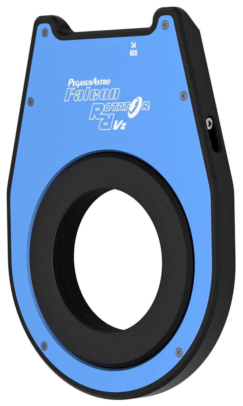 Falcon Rotator v2 (PegasusAstro, SKU: PEG-ROT-FALCON2) to niskoprofilowy, precyzyjny rotator pola obrazu o dużej aperturze M68, zaprojektowany do automatycznej i dokładnej orientacji kadru kamery w astrofotografii. Pomimo niewielkiej grubości konstrukcja umożliwia bezpieczną pracę z ciężkimi zestawami obrazującymi, zarówno w konfiguracjach klasycznych, jak i z montażami Alt-Az.