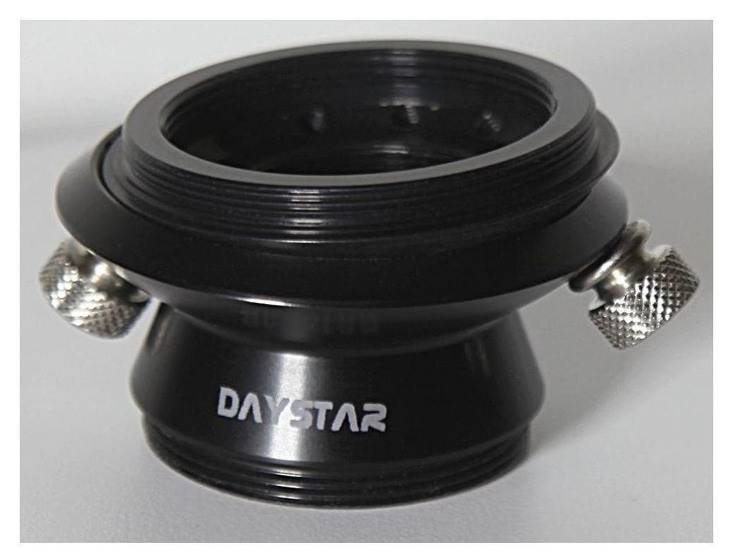 Interference Eliminator Daystar Filters – Quark do T, bez redukcji (SKU: IEQT) to adapter typu tilt przeznaczony do eliminacji interferencyjnych prążków (tzw. Newton’s Rings) pojawiających się w astrofotografii słonecznej wykonywanej w wąskopasmowym świetle monochromatycznym, takim jak H-alpha. Zjawisko to powstaje w wyniku interferencji fal świetlnych odbijających się wewnątrz sensora kamery lub elementów optycznych toru obrazowego, szczególnie w konfiguracjach z bardzo wąskimi filtrami spektralnymi.