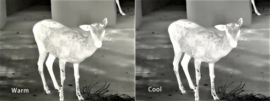 Dostępnych jest 5 palet kolorów, poza standardowymi paletami takimi jak: "biały gorący", "czarny gorący", "czerwony gorący" i "kolorowy", opracowaliśmy paletę "gorącego podświetlenia celu". Pod tą paletą użytkownicy mogą łatwo znaleźć cel dzięki wysokiemu kontrastowi między tłem a celem. Automatycznie śledź najgorętsze miejsce na scenie i szybko odkryj cel.