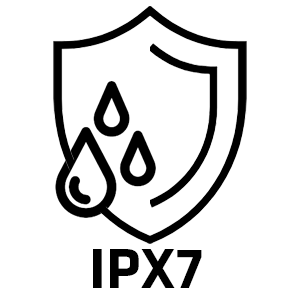 Urządzenie ma stopień wodoodporności IPX7 co oznacza całkowitą wodoszczelność (zanurzenie w wodzie do 1 metra na 30 minut)