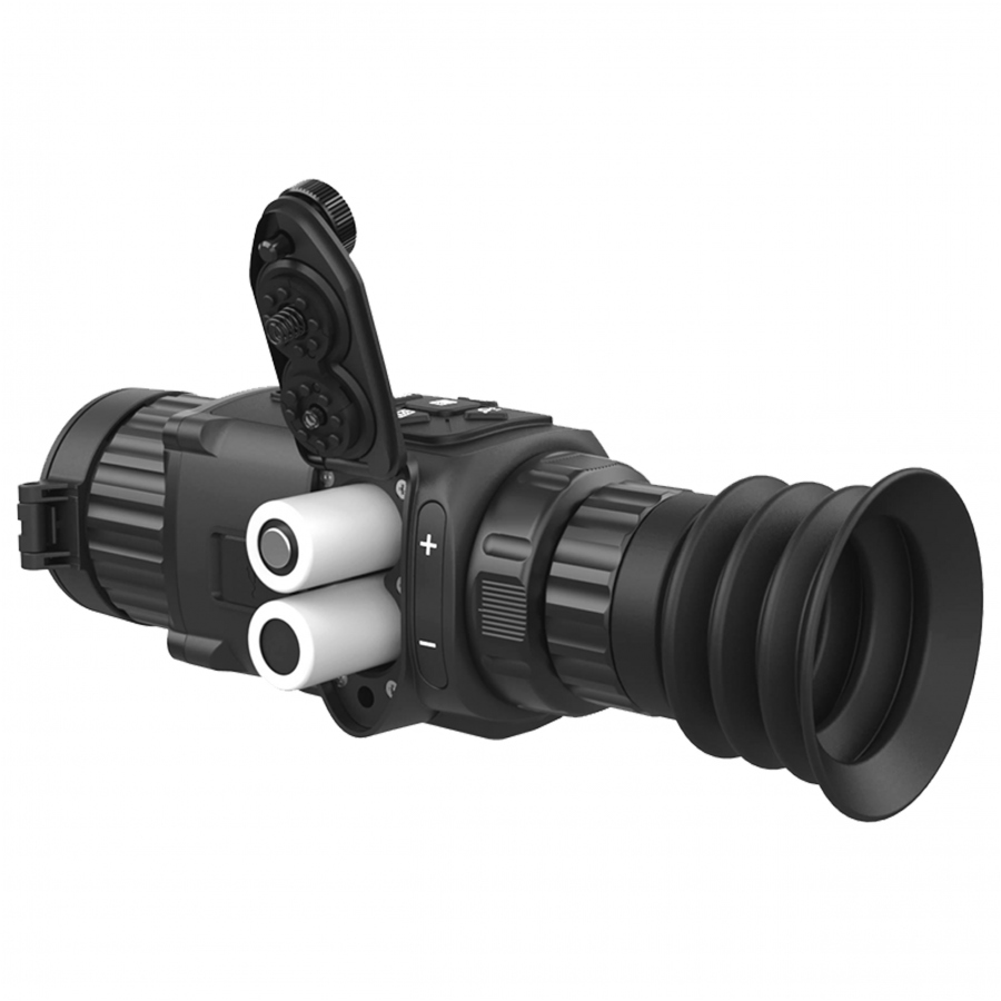Model Thunder PRO TQ35 wyposażony został w obiektyw o ogniskowej 35 mm i powiększeniu optycznym 1,8x, co w połączeniu z zoomem cyfrowym pozwala na osiągnięcie maksymalnego zbliżenia wynoszącego 14,4x. Celownik wykorzystuje niechłodzony sensor o rozdzielczości 384 x 288 px i rozmiarze pojedynczego piksela wynoszącym 12 µm. Wysoka czułość w połączeniu ze znakomitą optyką sprawia, że Thunder PRO TQ35 jest w stanie wykrywać cel oddalony nawet o 1800 metrów.