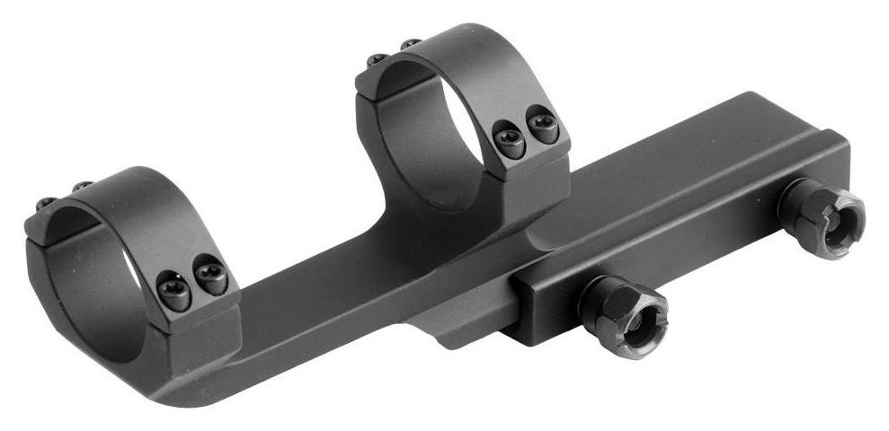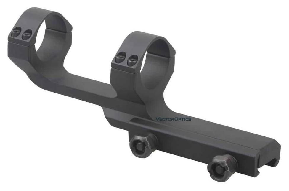 Montaż jednoczęściowy typu Offset do lunety celowniczej o średnicy tubusu 30 mm od firmy Vector Optics. Wykonany w całości z wytrzymałego aluminium lotniczego w kolorze czarnym, przystosowany do intensywnego użytkowania z bronią palną. Montaż offset doskonale sprawdza się na karabinkach AR-15 / AR-10, umożliwiając zamontowanie lunety w pozycji nieco wysuniętej do przodu, lecz wciąż bezpośrednio na komorze zamkowej — co zapewnia odpowiedni dystans między okularem a okiem strzelca.