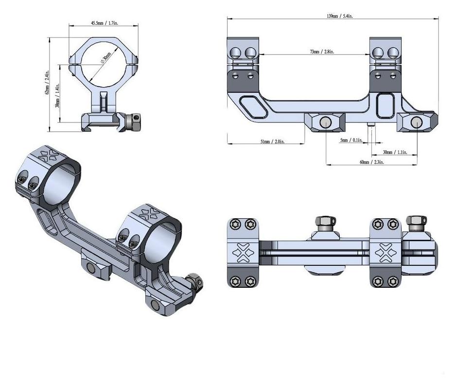 • jednoczęściowy montaż do lunety o tubusie 30 mm