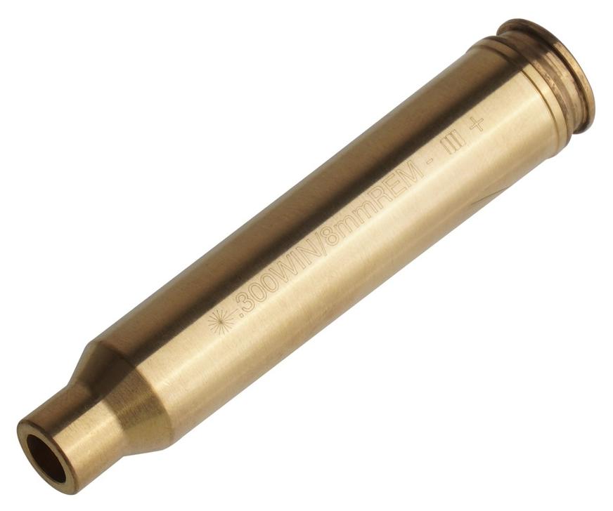 Nabój laserowy w kalibrze .300 Win. Mag. od firmy Vector Optics umożliwia precyzyjne ustawienie celownika optycznego lub kolimatora bez konieczności oddawania strzałów. Emituje czerwoną wiązkę lasera po załadowaniu do komory nabojowej, wskazując dokładny punkt celowania. Pozwala to wstępnie zgrać przyrządy celownicze i ograniczyć zużycie amunicji. Nabój wykonano z trwałego mosiądzu, a jego kryza jest odkręcana, co umożliwia umieszczenie trzech baterii AG13. Przy kalibracji na średnim i dużym dystansie zaleca się oddanie kontrolnego strzału, aby uwzględnić balistykę pocisku.