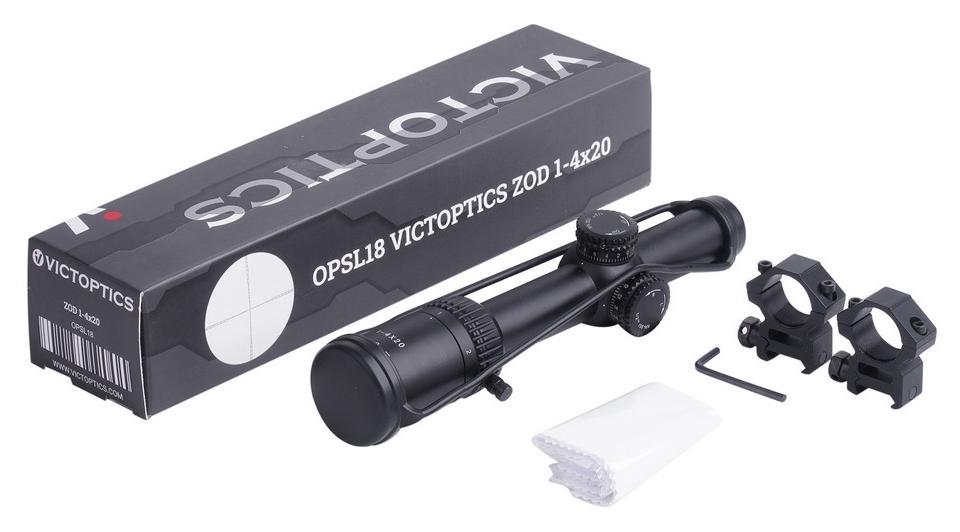 VictOptics luneta biegowa ZOD 1-4x20 LPVO, czarna to kompaktowa luneta celownicza o zmiennym powiększeniu 1-4x i średnicy obiektywu 20 mm. Model ZOD wyposażono w siatkę celowniczą VMD-2 Mil. Korpus wykonano z aluminium lotniczego 6063 T6, a wnętrze wypełniono azotem w celu ograniczenia parowania soczewek.