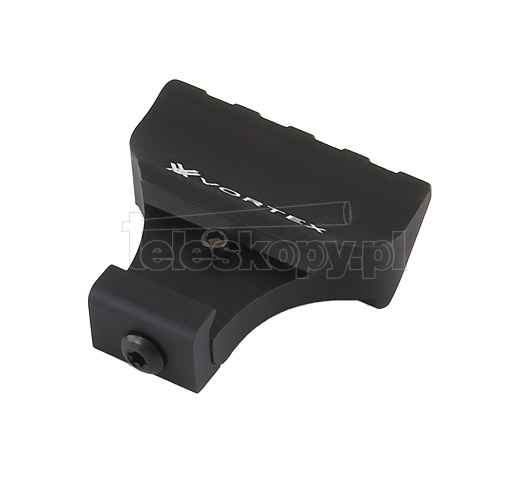 Montaż Vortex do szyny Weaver 22 mm, który dzięki nachyleniu go pod kątem 45° zamontujesz kolimator obok lunety celowniczej. Rozwiązanie to pozwoli ci na szybkie przejścia pomiędzy celowaniem na krótkim dystansie, a precyzyjnym celowaniem na większych odległościach.