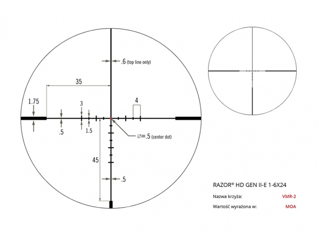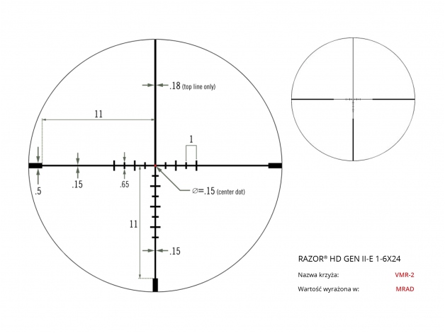 • typ krzyża celowniczego (siatki): VMR-2 MOA